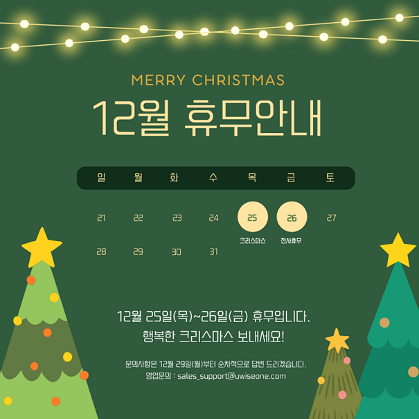 다가오는 크리스마스를 맞아, 유와이즈원의 12월 휴무 일정을 안내 드립니다.